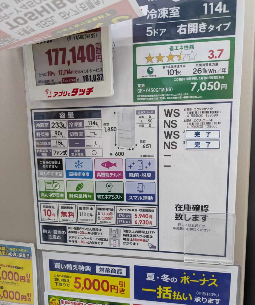 そんなときに目に入ったのが、おそらく2025年モデルであろう東芝のGR-Y 450GTMでした。