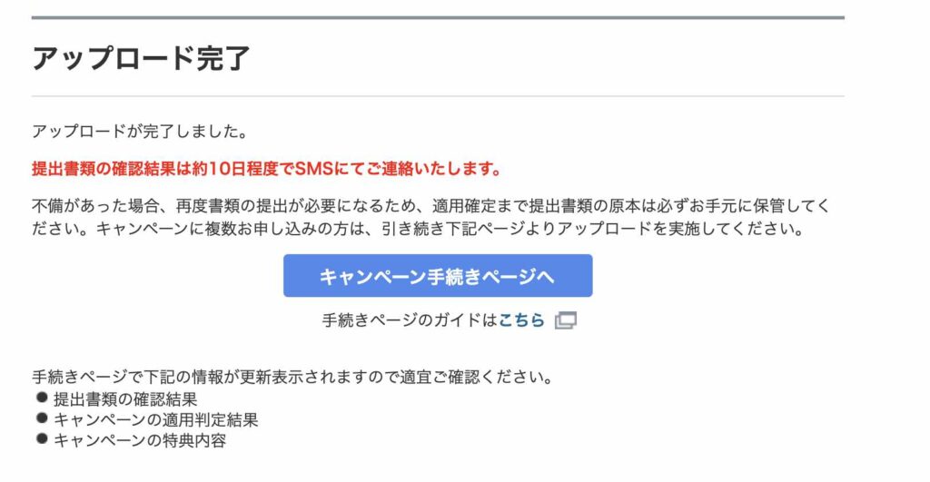 アップロードが完了したら申請完了です。約10日で処理してくれるらしいのでそれまで待ちましょう。