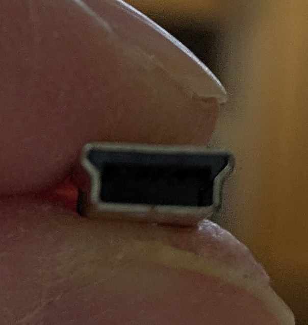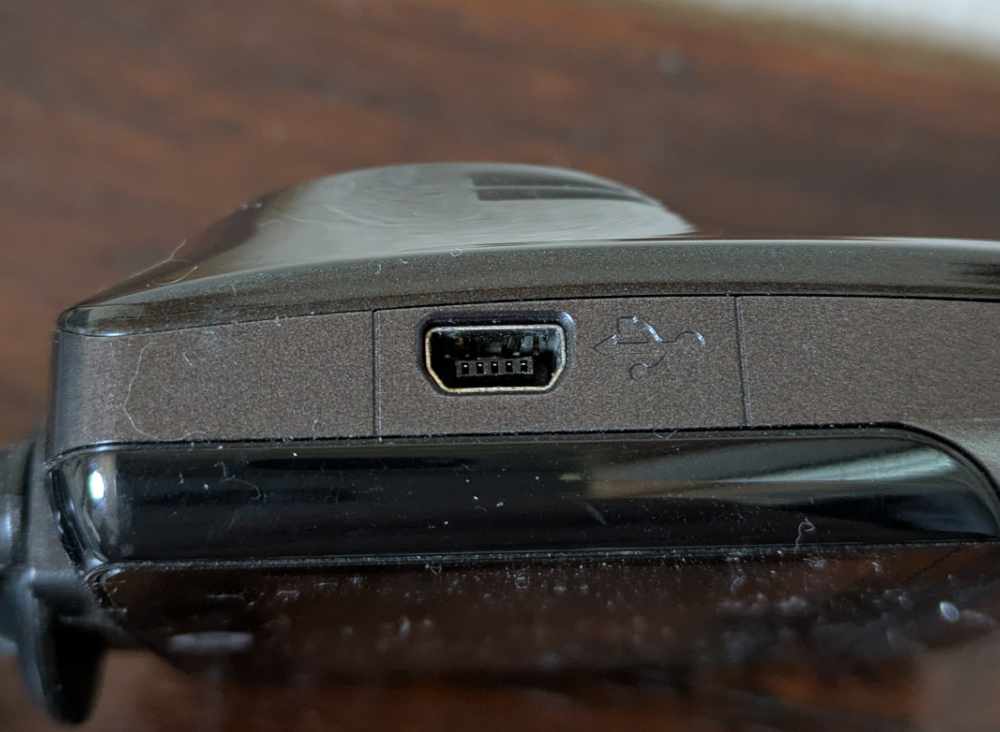 その結果、ドライブレコーダーのインターフェイスはMini USBと呼ばれるもののようで、その特徴は写真のとおり下側が直角になっているようです。