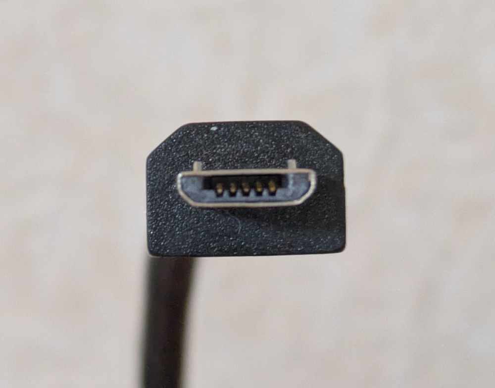 Mini USBと比べるとすこし平べったくて単純な形をしていますね。上に2本突起があるのも特徴かもしれません。